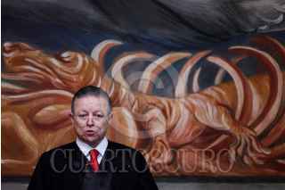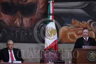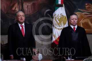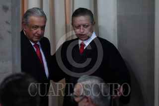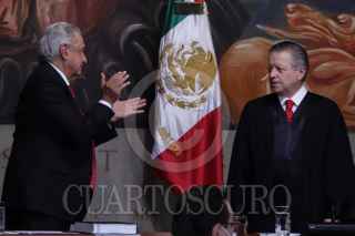 CIUDAD DE MÉXICO, 15DICIEMBRE2021.- Arturo Zaldívar Lelo de Larrea, ministro presidente de la Suprema Corte de Justicia de la Nación (SCJN), rindió sin tercer informe de actividades ante: el presidente Andrés Manuel López Obrador; Sergio Gutiérrez Luna, presidente de la Cámara de Diputados, y Olga Sánchez Cordero, presidente del Senado. FOTO: GALO CAÑAS/CUARTOSCURO.COM