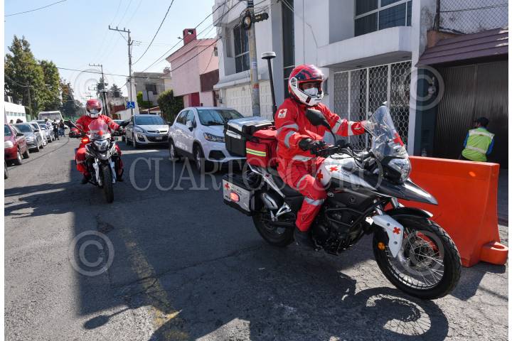 TOLUCA, ESTADO DE MÉXICO, 15DICIEMBRE2021.- La Delegación de Cruz Roja Toluca puso en marcha el sistema de Operación el Sistema de Motocicletas para la Cobertura de Emergencias de Cruz Roja con el objetivo de reducir el tiempo e respuesta a los llamados de auxilio a la población, mejorar la eficiencia en la atención de los servicios prehospitalarios y ahorrar en los costos de operación, será operado por personal paramédico con certificación vigente. Fue presentado por Jorge Alberto Fotastieri, Delegado Estatal de Cruz Roja Estado de México y Mario Vázquez de la Torre, presidente del Consejo Local de Cruz Roja Mexicana en Toluca. FOTO: CRISANTA ESPINOSA AGUILAR /CUARTOSCURO.COM