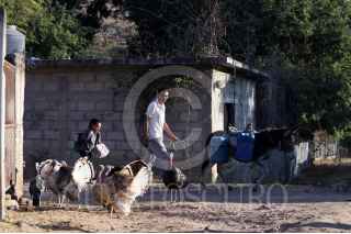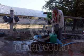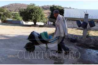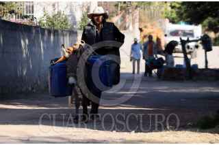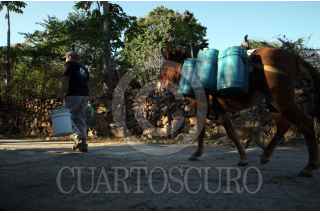 HUITZUCO, GUERRERO, 14DICIEMBRE2021.-Hombres acarrean agua en garrafas llevadas en burros a sus casas de un pozo de agua ubicado en el centro de la comunidad. La imagen tomada el día de ayer en la comunidad rural de Coahuilotla, en el municipio de Huitzuco, en el norte del estado de Guerrero. FOTO: MARGARITO PÉREZ RETANA / CUARTOSCURO.COM