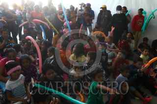 CIUDAD DE MÉXICO, 15DICIEMBRE2021.- La Caravana Migrante proveniente de Tapachula, Chiapas, ha pasado tres noches en la Casa del Peregrino San Juan Diego, en la alcaldía Gustavo A Madero, donde se dio asilo a 243 adultos y 63 menores. Al interior del refugio se instalaron baños provisionales, y dos carpas, una para que los migrantes duerman y la pequeña para actividades recreativas para niños, hay personal médico que ofrece pruebas Covid-19, vacunación contra la Influenza y valoración médica, así mismo hay personal de la alcaldía, de la Comisión de Derechos Humanos de la Ciudad de México y Bienestar Social, y en los alrededores elementos de la Policía. Madres de familia que piensan continuar su trayecto hacia Estados Unidos cuentan que estos días de estancia en la capital les ha servido para descansar y poder continuar con el largo viaje que les falta por continuar. FOTO: GRACIELA LÓPEZ /CUARTOSCURO.COM