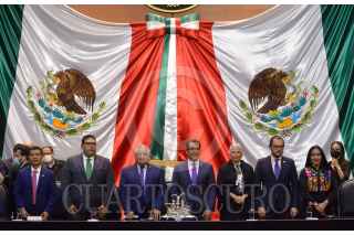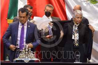 CIUDAD DE MÉXICO, 15DICIEMBRE2021.- Instalación de la Comisión Permanente del Congreso de la Unión durante el Primer Receso del Primer año de Ejercicio de la LXV Legislatura. El acto protocolario fue realizado en el salón Legisladores de la República luego de que la tribuna de salón de sesiones fuera tomado por integrantes del grupo parlamentario de Movimiento Ciudadano como protesta tras no ser incluidos en la comisión. FOTO: MARIO JASSO/CUARTOSCURO.COM