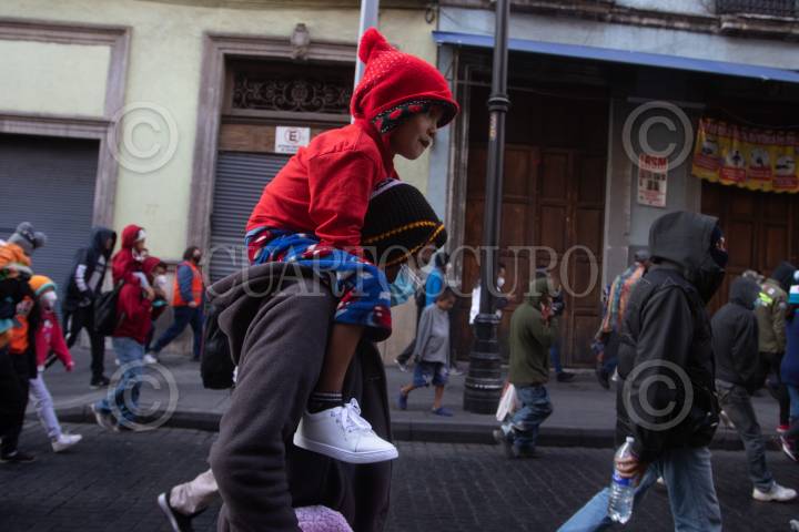 CIUDAD DE MÉXICO, 16DICIEMBRE2021.- La Caravana Migrante de aproximadamente 300 personas, que se refugian en la Casa del Peregrino San Juan de Diego, acudieron a las 6 de mañana a Palacio Nacional para pedir un libre tránsito sobre el país, en donde los recibió Nashiely Ramírez, secretaria de la Comisión de Derechos Humanos de la Ciudad de México, posteriormente caminaron hacia el Senado de la República, después a la COMAR y posteriormente esperan una cita con los funcionarios en la Secretaría de Gobernación a las 10 de la mañana. FOTO: GRACIELA LÓPEZ /CUARTOSCURO.COM