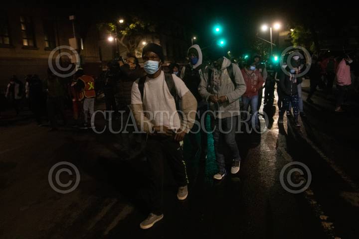 CIUDAD DE MÉXICO, 16DICIEMBRE2021.- La Caravana Migrante de aproximadamente 300 personas, que se refugian en la Casa del Peregrino San Juan de Diego, acudieron a las 6 de mañana a Palacio Nacional para pedir un libre tránsito sobre el país, en donde los recibió Nashiely Ramírez, secretaria de la Comisión de Derechos Humanos de la Ciudad de México, posteriormente caminaron hacia el Senado de la República, después a la COMAR y posteriormente esperan una cita con los funcionarios en la Secretaría de Gobernación a las 10 de la mañana. FOTO: GRACIELA LÓPEZ /CUARTOSCURO.COM