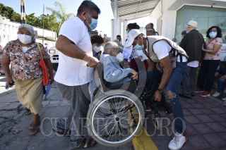 CHILPANCINGO, GUERRERO, 16DICIEMBRE2021.- Una larga fila la que se vio en este primer día de la aplicación de la tercera dosis de la vacuna contra el COVID-19 en Chilpancingo, para los adultos mayores de 60 años. Algunos llegaron desde las 4 de la mañana, la vacunación inicio hasta las 9 de la mañana, a apartar su lugar y ser los primeros en recibir la vacuna de la marca AstraZeneca. En este primer día solo se vacunarán a los adultos con apellidos que inicien con las letras A y B, el día viernes C y D, pero para los demás aún no existe una calendarización para recibir el fármaco, por lo que se les pide a los adultos, el estar pendientes de cuando se emita la convocatoria para los ciudadanos faltantes. Este jueves, los adultos mayores se concentraron desde la madrugada en el Hospital General ‘Raymundo Abarca Alarcón’ (HGRAA), ubicado al norte de la capital, donde se pudo observar una fila de casi un kilómetro, algunos acompañados por familiares más jóvenes para ayudarlos en su movilidad, para el cansancio de las piernas, optaron por llevar bancos. FOTO: DASAEV TELLEZ ADAME /CUARTOSCURO.COM