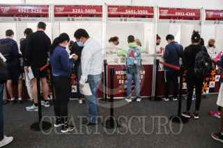 CIUDAD DE MÉXICO, 17DICIEMBRE2021.- Este día en la sala de armas de la Magdalena Mixhuca se entregaron los kit de los participantes del medio maraton BBV A de la Ciudad de México que se realizará el próximo Domingo y recorrera Paseo de la Reforma. FOTO: VICTORIA VALTIERRA/CUARTOSCURO.COM