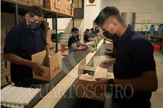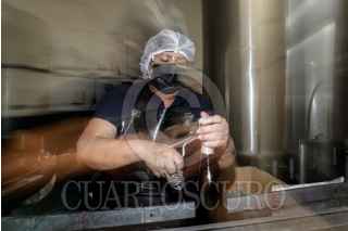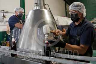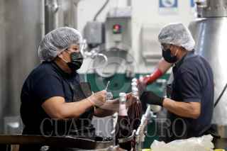 HUEJOTZINGO, PUEBLA, 18DICIEMBRE2021.- Productores de Huejotzingo envasan sidra en la fábrica Maipu, para los festejos navideños y de año nuevo. FOTO: MIREYA NOVO/ CUARTOSCURO.COM