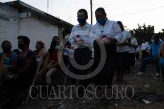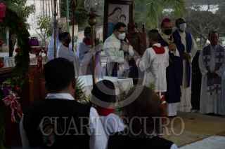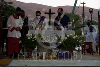 TUXTLA GUTIÉRREZ, CHIAPAS, 18DICIEMBRE2021.- En el día internacional del migrantes se llevó a acabo una misa oficiada por el Arzobispo de Tuxtla, justo en el lugar donde decenas de migrantes murieron en la volcadura del tráiler donde los transportaban en la carretera Chiapa de Corzo - Tuxtla. FOTO: ISABEL MATEOS /CUARTUSCURO.COM