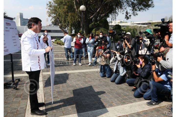 CIUDAD DE MÉXICO, 19DICIEMBRE2021.- Mario Delgado, presidente del partido político MORENA ofreció conferencia se prensa luego de entregar un cheque de $547, 726, 006.25 en el Ine supuestamente para vacunas contra COVID-19. FOTO: ANDREA MURCIA /CUARTOSCURO.COM