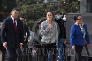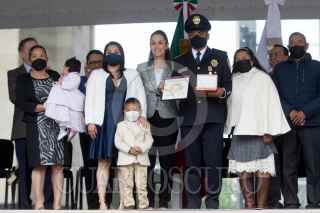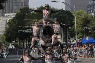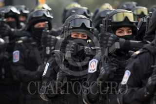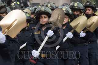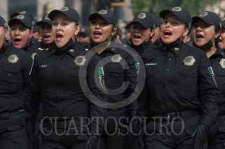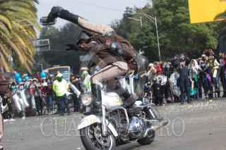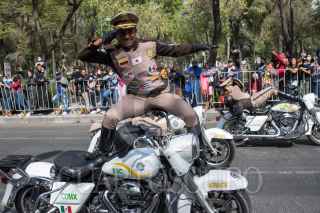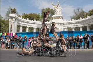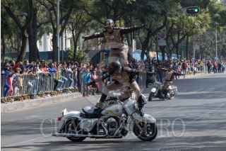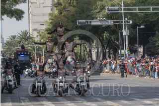 CIUDAD DE MÉXICO, 19DICIEMBRE2021.- Claudia Sheinbaum, Jefa de Gobierno; Omar García Harfuch; Rosa Icela Rodríguez, secretaria de Seguridad y Participación Ciudadana; y Rafael Guerra Álvarez, presidente del Poder Judicial y del Consejo de la Judicatura de la Ciudad de México, encabezaron el desfile del Día del Policía, en el cual participaron diversos contingentes de policías quienes marcharon del Monumento a la Revolución hacia el Hemiciclo a Juárez. El agrupamiento de motociclistas práctico diversas acrobacias para el deleite de los presentes. FOTO: MOISÉS PABLOCUARTOSCURO.COM