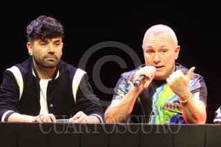CIUDAD DE MÉXICO. 20DICIEMBREQ2021.-Pepe Valdez, Diego Cárdenas, Jorge Anzaldo, y Alejandro Grou,en el anuncio del musical "Charly y la Fábrica de Chocolate", que se presentará en el teatro del centro cultural Cuauhtémoc. FOTO: VICTORIA VALTIERRA/CUARTOSCURO.COM