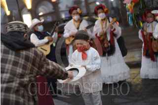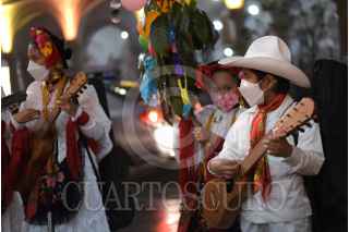 XALAPA, VERACRUZ, 20DICIEMBRE2021.- Como cada año en municipios del estado de Veracruz, adultos y niños salen a cantar La Rama días previos al 24 de diciembre. En esta ocasión, en el parque Juárez de Xalapa, un grupo de personas vestidos de jarochos cantaron y tocaron pidiendo dinero a los transeúntes. FOTO: YERANIA ROLÓN/CUARTOSCURO.COM