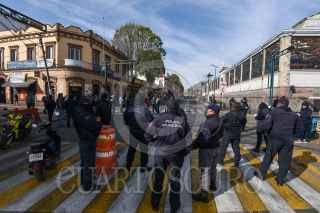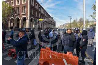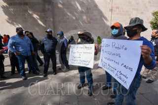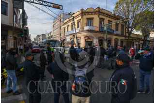 TOLUCA, ESTADO DE MÉXICO, 21DICIEMBRE2021.- Policías municipales de Toluca bloquearon las avenidas Lerdo, Rayón e Independencia exigiendo el pago de al menos tres quincenas atrasadas, aguinaldo y prima vacacional, piden que el alcalde Juan Rodolfo Sánchez se haga responsable de la falta de pagos antes de que concluya si administración. FOTO: CRISANTA ESPINOSA AGUILAR /CUARTOSCURO.COM