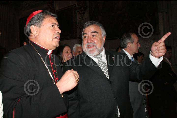 MÉXICO, D.F. 1NOVIEMBRE2006.- Se presentaron los resultados de la restauración realizada en la Catedral Metropolitana. Sari Bermudez, secretaria de cultura, el cardenal Norverto Rivera Carrera y Reyes Taméz, secretrio de educación, hicieron un recorrido por todo el templo. FOTO: PAOLA HIDALGO/CUARTOSCURO.COM
