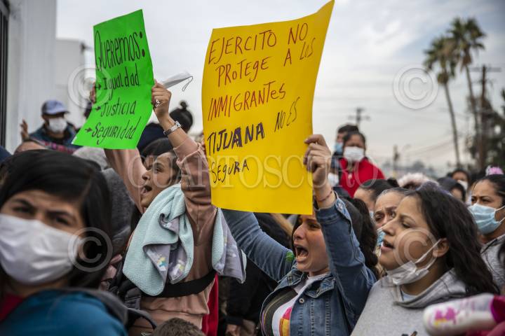 TIJUANA, BAJA CALIFORNIA, 21DICIEMBRE2021.- Un grupo de migrantes se manifestaron en las instalaciones de la Segunda Zona Militar, ubicadas en el Cuartel Morelos, para protestar por la falta de seguridad que han tenido en los albergues y la poca atención de las autoridades. Aseguraron que un grupo de personas con armas largas acudieron al albergue Agape Migrante, al solicitar ayuda a los autoridades no recibieron respuesta. FOTO: OMAR MARTÍNEZ /CUARTOSCURO.COM