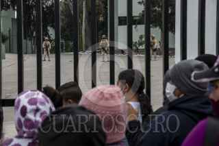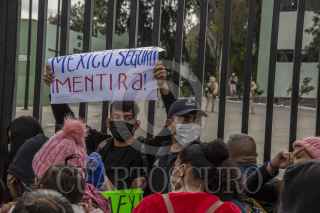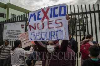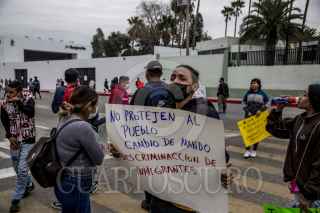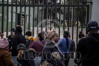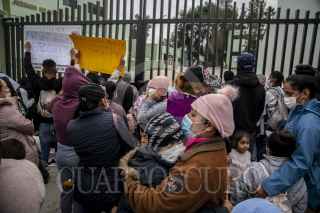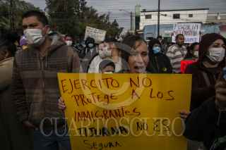 TIJUANA, BAJA CALIFORNIA, 21DICIEMBRE2021.- Un grupo de migrantes se manifestaron en las instalaciones de la Segunda Zona Militar, ubicadas en el Cuartel Morelos, para protestar por la falta de seguridad que han tenido en los albergues y la poca atención de las autoridades. Aseguraron que un grupo de personas con armas largas acudieron al albergue Agape Migrante, al solicitar ayuda a los autoridades no recibieron respuesta. FOTO: OMAR MARTÍNEZ /CUARTOSCURO.COM