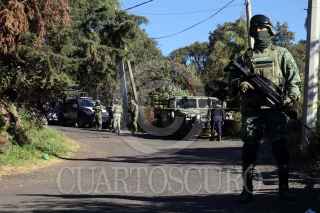 HUITZILAC, MORELOS, 22DICIEMBRE2021. Elementos del ejercito y de la policía de Morelos resguardan la escena de un crimen donde fueron localizados los cadáveres de dos hombres que fueron ejecutados a balazos y envueltos en bolsas de basura. El descubrimiento se realizo esta mañana a detrás del paradero de comida tradicional de Coajomulco, muy cerca de la autopista a la ciudad de México. Investigadores y peritos en criminalística de la Fiscalía del Estado acudieron a levantar evidencia para la averiguación que inicia, finalmente el Servicio Médico Forense levanto los cadáveres que fueron trasladados a la morgue en espera de que sean identificados y reclamados. FOTO: MARGARITO PÉREZ RETANA / CUARTOSCURO.COM