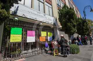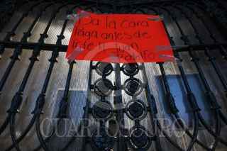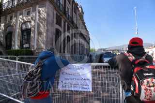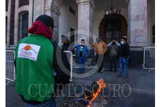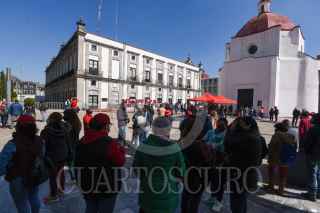 TOLUCA, ESTADO DE MÉXICO, 22DICIEMBRE2021.- Por tercer día consecutivo trabajadores del ayuntamiento de Toluca continuaron con bloqueos en la capital mexiquense así como el resguardo de oficinas de este municipio, para garantizar se realice el pago de sus quincenas atrasadas, aguinaldo y primas vacacional que les continúa adeudando la administración del presidente municipal Juan Rodolfo Sánchez Gómez. FOTO: CRISANTA ESPINOSA AGUILAR /CUARTOSCURO.COM