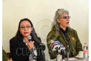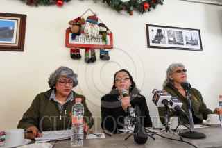 TOLUCA, ESTADO DE MÉXICO, 22DICIEMBRE2021.- Después de la manifestación realizada en el edificio de rectoría de la Universidad Autónoma del Estado de México UAEM por parte de personal ante el descuento del ISR en su aguinaldo las académicas Laura Verónica Reyes Gómez, Adelaida Rojas García y Leonor Guadalupe Delgadillo Guzmán en conferencia de prensa informaron que es necesario un compromiso por parte del rector, Carlos Eduardo Barrera Díaz, para mejorar las cuestiones laborales, ya que no es la primera vez que tienen algún problema de este tipo, y en administraciones pasadas han visto violados sus derechos como trabajadores. FOTO: CRISANTA ESPINOSA AGUILAR /CUARTOSCURO.COM