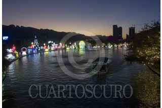 MONTERREY, NUEVO LEÓN, 22DICIEMBRE2021.- El festival de luces y figuras navideñas Luztopía, ofrece un espectáculo con el tema del espacio en su edición 2021 en el Paseo Santa Lucía. FOTO: GABRIELA PÉREZ MONTIEL / CUARTOSCURO.COM