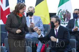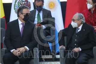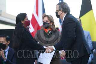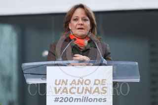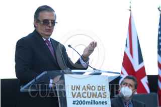 CIUDAD DE MÉXICO, 23DICIEMBRE2021.- Marcelo Ebrard, secretario de Relaciones Exteriores, y Martha Delgado, subsecretaría de la Secretaria de Relaciones Exteriores, encabezaron "Un año de vacunas #200 millones", el cual se realizó en la terraza de la Secretaría de Relaciones Exteriores. FOTO: GRACIELA LÓPEZ /CUARTOSCURO.COM