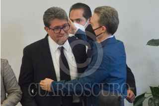CIUDAD DE MÉXICO, 23DICIEMBRE2021.- Ricardo Monreal, senador y presidente de la Junta de Coordinación Política de la Cámara de Senadores, y Dante Delgado, senador de Movimiento Ciudadano, encabezaron conferencia de prensa para informar su postura en contra ante la reciente detención de José Manuel Del Río Virgen, secretario Técnico de la Jucopo por su presunta participación en la autoría intelectual en el asesinato de René Tovar, alcalde electo de Cazones, Veracruz. El senado creó la comisión plural para la investigación del caso conformada por los senadores: Dante Delgado; Dante Delgado (MC); Eduardo Ramírez (Morena); Julem Rementería (PAN); Beatriz Paredes (PRI) ; Raúl Bolaños (PVEM); Miguel Ángel Mancera (PRD) y Sasil de León (Encuentro Social). FOTO: MARIO JASSO/CUARTOSCURO.COM