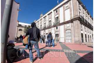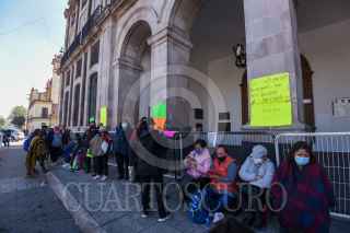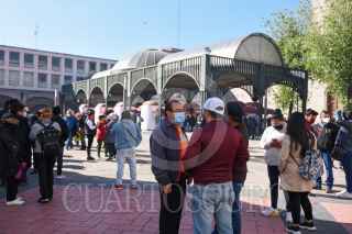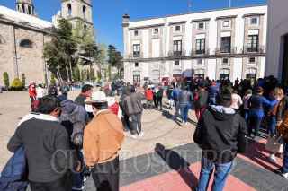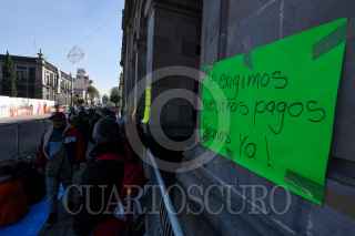 TOLUCA, ESTADO DE MÉXICO, 23DICIEMBRE2021.- Trabajadores del ayuntamiento de Toluca por cuarto día consecutivo continúan protestando ante la falta de pago de salarios, aguinaldo y primas vacacionales, oficinas y edificios del ayuntamiento continúan tomados, una comitiva de trabajadores acudió a la CDMX y se manifestó en Palacio Nacional. FOTO: CRISANTA ESPINOSA AGUILAR /CUARTOSCURO.COM