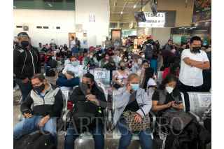 CIUDAD DE MÉXICO, 24DICIEMBRE2021.- Decenas de capitalinos esperaron abordar su autobús para viajar fuera de la capital en la Central de Autobuses Taxqueña. FOTO: GRACIELA LÓPEZ / CUARTOSCURO.COM
