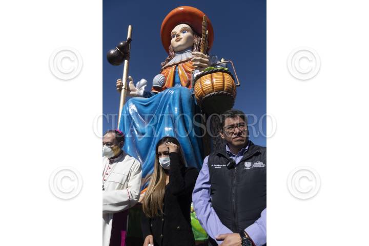 FRESNILLO, ZACATECAS, 25DICIEMBRE2021.- Cientos de peregrinos asisten al cerro de la Cruz a visitar la figura del Niño de Atocha Gigante, el cual se inauguró el día de hoy en presencia del párroco de la parroquia y el presidente municipal, Saúl Monreal Ávila. FOTO: DIANA VALDEZ/CUARTOSCURO.COM