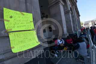 TOLUCA, ESTADO DE MÉXICO, 27DICIEMBRE2021.- Trabajadores del ayuntamiento de Toluca retomaron este lunes las protestas ante la falta de pagos de quincenas, aguinaldos y primas vacacionales, se concentraron en oficinas y en el Palacio Municipal a espera de sus pagos. FOTO: CRISANTA ESPINOSA AGUILAR /CUARTOSCURO.COM