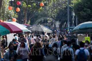 CIUDAD DE MÉXICO, 27DICIEMBRE2021.- Decenas de capitalinos transitaron por la calle de Génova utilizando en su mayoría el cubrebocas para evitar contagios de Ómicron, la nueva variante de Covid-19. FOTO: GRACIELA LÓPEZ /CUARTOSCURO.COM