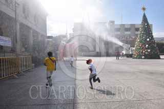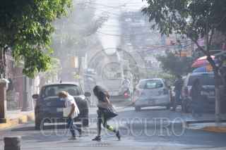 CHILPANCINGO, GUERRERO, 27DICIEMBRE2021.- Personal de la Secretaría de Salud del Municipio de Chilpancingo sanitizaron el Zócalo de la Ciudad y las principales avenidas utilizando el camión con turbina que fue adquirido recientemente. Esto, a pesar de que el secretario de salud municipal Cipriano Gutiérrez Castro ha declarado que científicamente se ha confirmado que la aplicación de sanitizantes no previenen la dispersión del covid-19. Pasado el mediodía, el camión fue encendido por tercera ocasión según informó uno de los trabajadores a bordo de la unidad, se ha utilizado sólo en la plancha del zócalo para sanitizar después de eventos masivos. Aunque el titular de Salud Municipal, ha declarado que lo único efectivo para prevenir los contagios de este coronavirus no es la sanitizacion de espacios públicos, sino el uso de cubrebocas, lavado de manos y la sana distancia. FOTO: DASSAEV TÉLLEZ ADAME/CUARTOSCURO.COM
