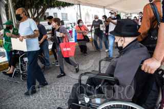 CIUDAD DE MÉXICO, 28DICIEMBRE2021.- Adultos myores, embarazadas, y rezagados estan siendo vacunados en el Campo Militar Marte este martes, con la condición de ser habutantes de la Ciudad de México. FOTO: VICTORIA VALTIERRA/CUARTOSCURO.COM