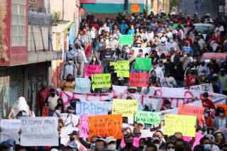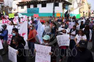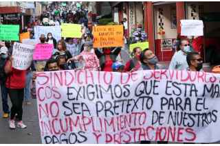 CUERNAVACA, MORELOS, 28DICIEMBRE2021.- Movilización de dos sindicatos del ayuntamiento de la capital por el adeudo que tiene la administración actual, se les debe dos quincenas, el aguinaldo, prima vacacional y bono por el fin de trienio. La movilización incluye bloqueos al sur y norte de la capital. El presidente municipal Francisco Villalobos Adán ha abandonado por completo al municipio a tres días que termine su encargo. FOTO: MARGARITO PÉREZ RETANA / CUARTOSCURO.COM