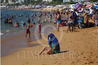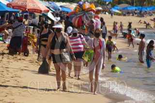 ACAPULCO, GUERRERO, 28DICIEMBRE2021.- Turistas disfrutaron del mar y la arena en la Playa Icacos a pocos días de con concluir el año, este destino turístico espera alcance la máxima ocupación hotelera. FOTO: CARLOS ALBERTO CARBAJAL/CUARTOSCURO.COM