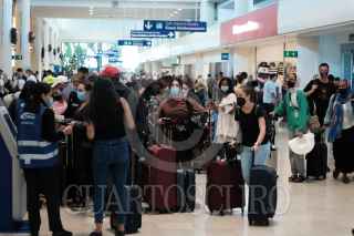 CANCÚN, QUINTANA ROO, 28DICIEMBRE2021.- A pesar de que a nivel mundial se registran cientos de cancelaciones de vuelos por la variante Ómicron del Covid-19, el Aeropuerto Internacional de Cancún ha registrado un promedio de 600 vuelos diarios en la última semana, más de 400 de ellos internacionales y hasta el momento no se ha reportado ninguna cancelación por nevada o por la nueva variante. FOTO: ELIZABETH RUIZ/CUARTOSCURO.COM