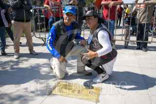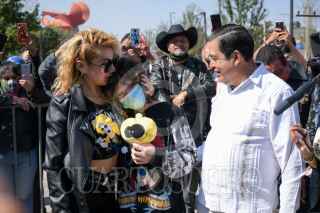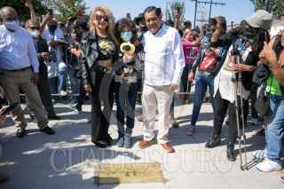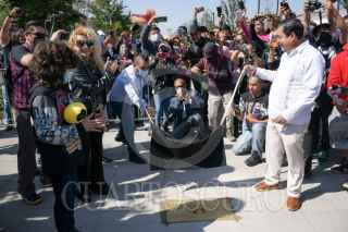 NEZAHUALCÓYOTL, ESTADO DE MÉXICO, 28DICIEMBRE2021.- Cherry Monttana y su hijo encabezaron la develación de la placa de quien fuera su esposa Charlie Monttana, en el Paseo Cultural de Nezahualcóyotl, en honor a la su trayectoria artística y ser un orgullo para Neza. También asistió el presidente municipal Juan Hugo de la Rosa García. FOTO: CUARTOSCURO.COM