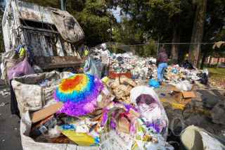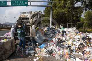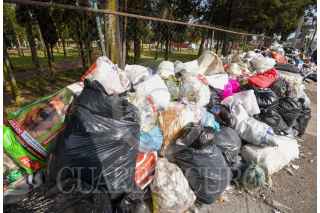 TOLUCA, ESTADO DE MÉXICO, 28DICIEMBRE2021.- Trabajadores de limpieza de Toluca reactivaro el servicio de limpieza y levantaron montañas de basura que fueron dejadas en diversos puntos de la ciudad por parte de la ciudadanía al suspenderse el servio de recolección de basura durante las protestas por trabajadores de Toluca, exigiendo el pago de quincenas, prima vacacional y aguinaldo, después de llegar a un acuerdo regresaron a su trabajo. FOTO: CRISANTA ESPINOSA AGUILAR /CUARTOSCURO.COM
