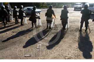 OAXACA, OAXACA 01NOVIEMBRE2006.- Elementos de la PFP custodian las inmediaciones del canal 9, las cuales fueron recuperadas el día de hoy. En la imagen se observan elmentos de la PFP con armas largas y chalecos antivalas. FOTO: CARLOS SALINAS/CUARTOSCURO.COM