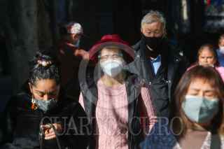 CIUDAD DE MÉXICO, 29DICIEMBRE2021.- Turistas extranjeros pasean con cubrebocas y carera por las calles del Centro Histórico, autoridades capitalina han informado que si existe un ligero repunte en los casos de Covid-19. FOTO: MOISÉS PABLO/CUARTOSCURO.COM