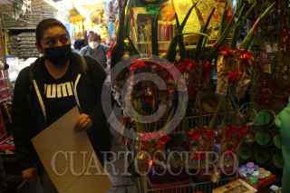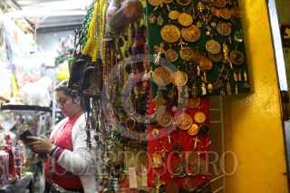 CIUDAD DE MÉXICO. 29DICIEMBRE2021.- Karina tiene su tienda en el interior del mercado de Sonora, ahí realiza limpias lectura de cartas, venta de veladoras y toda clase de amuletos y talismanes para iniciar el año 2022, protegidos y con el mejor ánimo de que sea el mejor en salud dinero y amor. FOTO: VICTORIA VALTIERRA/CUARTOSCURO.COM