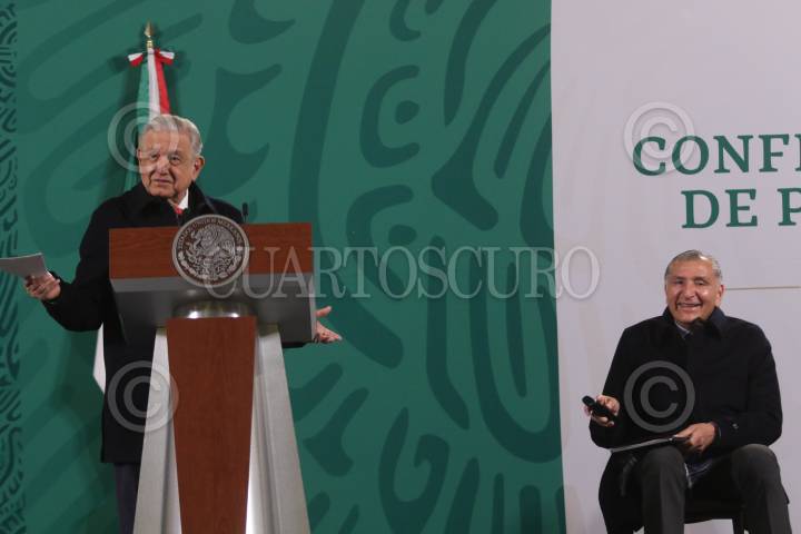 CIUDAD DE MÉXICO, 30DICIEMBRE2022.- Andrés Manuel López Obrador, Presidente de México, encabezó la conferencia matutina en Palacio Nacional, en la cual informó sobre los resultados de los programas para el Bienestar. Lo acompañaron Adán Augusto López Hernández, secretario de Gobernación; Javier May Rodríguez, secretario de Bienestar; Carlos Torres Rosas, coordinador de Programas Integrales para el Desarrollo, Presidencia de la República; Victoria Rodríguez Ceja, subsecretaria de Egresos de la Secretaría de Hacienda y Crédito Público (SHCP); Ariadna Montiel Reyes, subsecretaria de Bienestar; Marath Baruch Bolaños López, subsecretario de Empleo y Productividad Laboral, Secretaría del Trabajo y Previsión Social (STPS); Pamela López Ruiz, directora general del programa La Escuela es Nuestra de la Secretaría de Educación Pública (SEP), y Abraham Vázquez Piceno, coordinador nacional de Becas para el Bienestar Benito Juárez de la SEP. FOTO: MOISÉS PABLO/CUARTOSCURO.COM
