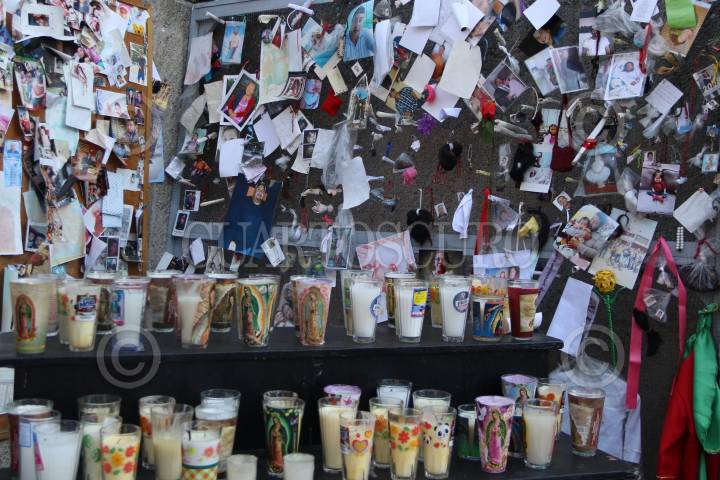 CIUDAD DE MÉXICO, 30DICIEMBRE2021.- Miles de fieles acuden a la Basílica de Guadalupe a visitar a la morenita de Tepeyac, para agradecer favores y pedir lo mejor para el próximo año. Veladoras, fotos, cabello y recuerdos están a un costado del atrio de la Villa, dónde acuden a recordar a sus fallecidos. FOTO: VICTORIA VALTIERRA/CUARTOSCURO.COM