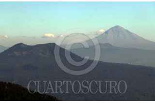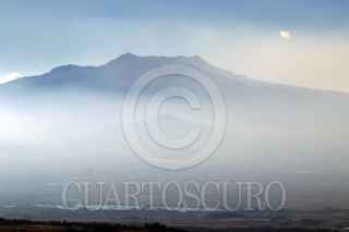 XALATLACO, ESTADO DE MÉXICO, 29DICIEMBRE2021.- En el primer plano se observa el volcán inactivo El Pelado, después el Tlaloc y al fondo el volcán Popocatépetl. Fotografía tomada la tarde de ayer desde el paso de altura de Xalatlaco en la frontera de el Estado de México, Morelos y la Ciudad de México. FOTO: MARGARITO PÉREZ RETANA / CUARTOSCURO.COM