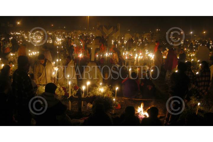 SAN ANDRÉS CUEXCONTITLÁN, EDOMEX 02NOV2006.- Continua la tradición de la comunidad otomi y mazahua de celebrar el día de muertos en el panteón.Una mujer coloca la ofrenda la tumba de su familiar. FOTO: GERMÁN ROMERO/CUARTOSCURO.COM
