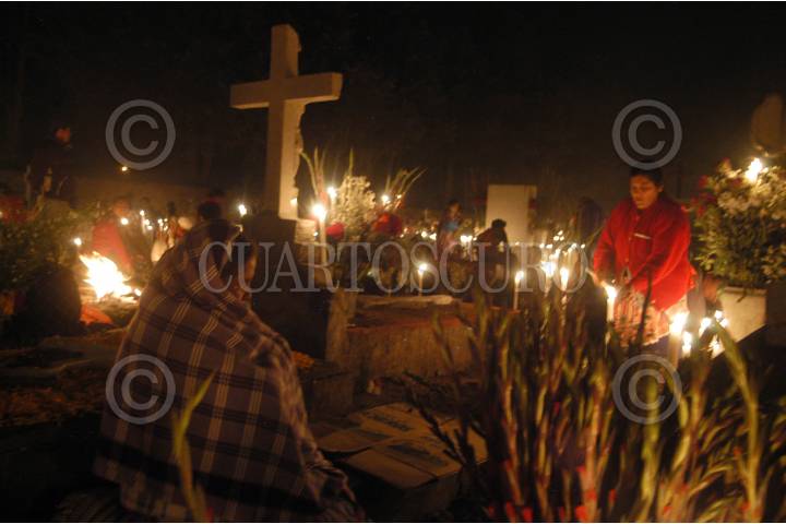 SAN ANDRÉS CUEXCONTITLÁN, EDOMEX 02NOV2006.- Continua la tradición de la comunidad otomi y mazahua de celebrar el día de muertos en el panteón.Una mujer coloca la ofrenda la tumba de su familiar. FOTO: GERMÁN ROMERO/CUARTOSCURO.COM