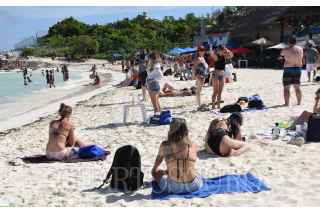 CANCÚN, QUINTANA ROO, 31DICIEMBRE2021.- Turistas nacionales y extranjeros disfrutan de el último día del año en las playas de este destino turístico. FOTOS ELIZABETH RUIZ/CUARTOSCURO.COM