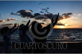 CANCÚN, QUINTANA ROO, 01ENERO2021.- Turistas recibieron los primeros rayos del sol de este 2022 en Playa del Niño. FOTOS ELIZABETH RUIZ/CUARTOSCURO.COM