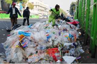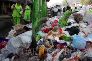 CIUDAD DE MÉXICO, 01ENERO2022.- Trabajadores de obras de la capital realizan la limpieza de la avenida Anillo de Circunvalación luego de la celebración de Año Nuevo, las cuales propiciaron la acumulación de basura sobre ésta arteria de la ciudad. FOTO: DANIEL AUGUSTO /CUARTOSCURO.COM