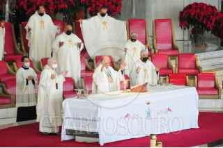 CIUDAD DE MÉXICO, 01ENERO2021.- Este medio día se llevó a cabo la Misa de Año Nuevo en la Basílica de Guadalupe, esta ocasión, el Arzobispo Carlos Aguiar Retes, cedió su lugar para que quien encabezara la misa fuera Franco Coppola, quien hoy deja su cargo como representante del Vaticano en México y será trasladado a Bélgica. FOTO: DANIEL AUGUSTO /CUARTOSCURO.COM