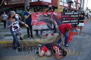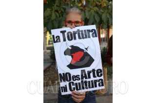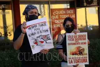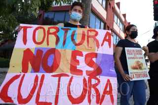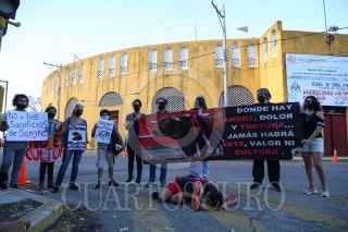 MÉRIDA, YUCATÁN, 01ENERO2022.- Un grupo de activistas se manifestaron a las afueras de la Plaza de Toros Mérida para demostrar su inconformidad por la celebración de las corridas de toros. FOTO: MARTÍN ZETINA/CUARTOSCURO.COM